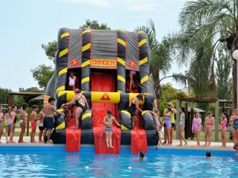Escuelita de Natación y Vida en la Naturaleza: el grupo de 8 y 9 años disfrutó del tobogán inflable