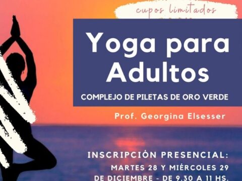 Recordamos que entre las actividades dispuestas para esta temporada en el complejo, se dictarán también clases de yoga para adultos a cargo de la profesora Georgina Elsseser. Serán a partir…