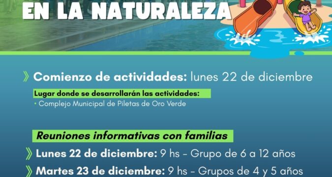 La reunión informativa para padres será ese mismo lunes 22 de diciembre a las 9 hs para el grupo de 6 a 12 años y el martes 23 de diciembre para el grupo de 4 y 5 años en el mismo horario.