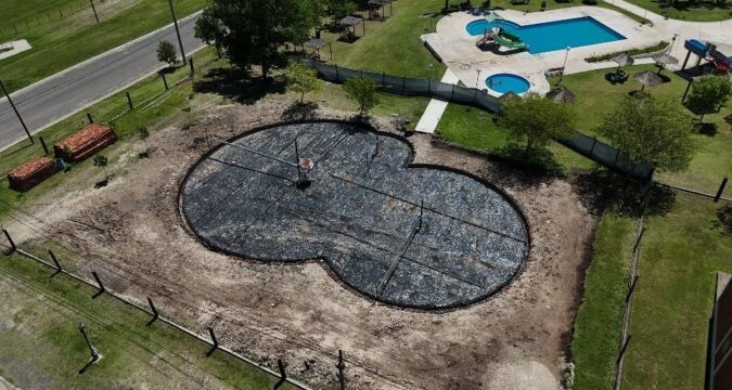 En este momento se está realizando la base de hormigón y luego comenzarán con las paredes. En su parte más profunda la pileta tendrá 1.20 y en la más baja 60 centímetros. Contará con escalones de acceso y rampa con baranda para personas con movilidad reducida.